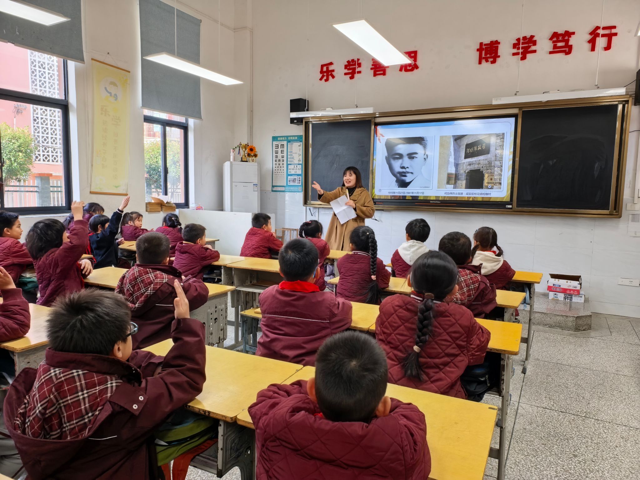 为深入推进大中小学思政课一体化建设,充分发挥高校在思政教育中的引领辐射作用,11月18日,我校思政课教师解维娟受邀前往咸宁实验外国语玉泉小学,为201班40余名学生带来一堂以“三封家书见勇敢——英雄何功伟的故事”为主题的红色思政讲堂。此次活动以本土英雄事迹为纽带,搭建起大中小学思政教育衔接桥梁,让红色基因在孩子们的心田深深扎根,为思政课一体化建设注入鲜活力量。