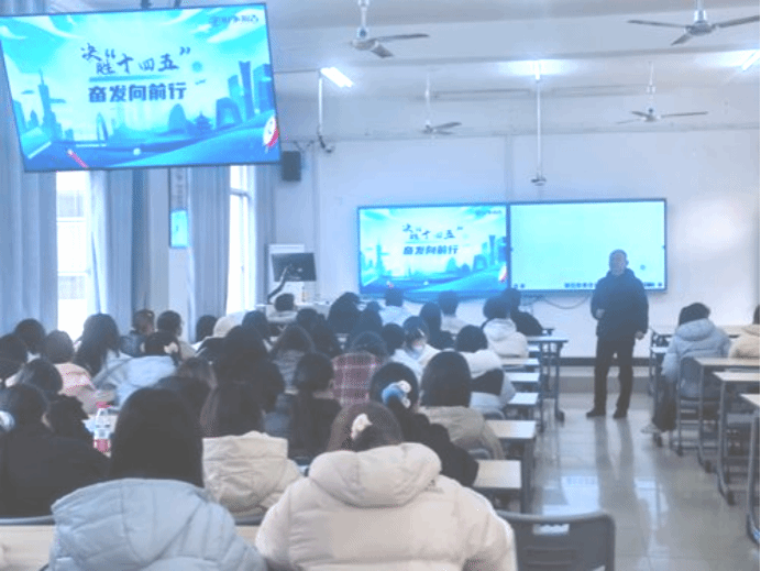 张书记以中国共产党的十九届五中全会通过的《中共中央关于制定国民经济和社会发展第十四个五年规划和二O三五年远景目标的建议》为切入点,以问题链:我国“十四五”以来取得哪些发展成就?我国应对挑战和实现发展有哪些宝贵经验?以及“十五五”时期实现什么样的发展?引发学生思考,充分利用数据、学生家乡发展现状、学校的现实、咸宁的实际等具体案例等进行讲解,深入浅出,娓娓道来。